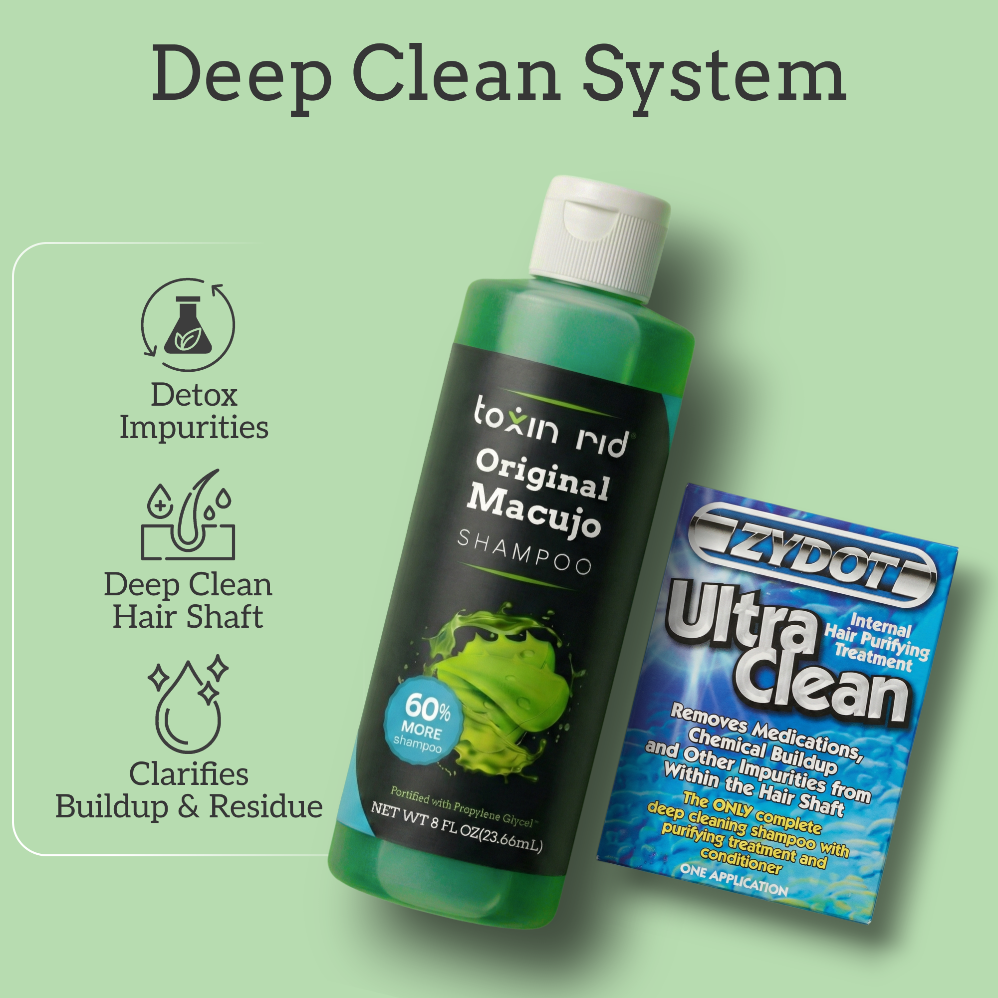 Combining Original Macujo Aloe Toxin Rid Shampoo  and Zydot Ultra Clean is a proven, high-performance solution for those preparing for a hair follicle screening. These two products are essential components of the Original Macujo Method, a rigorous 7-step hair detox process trusted by thousands for its effectiveness.